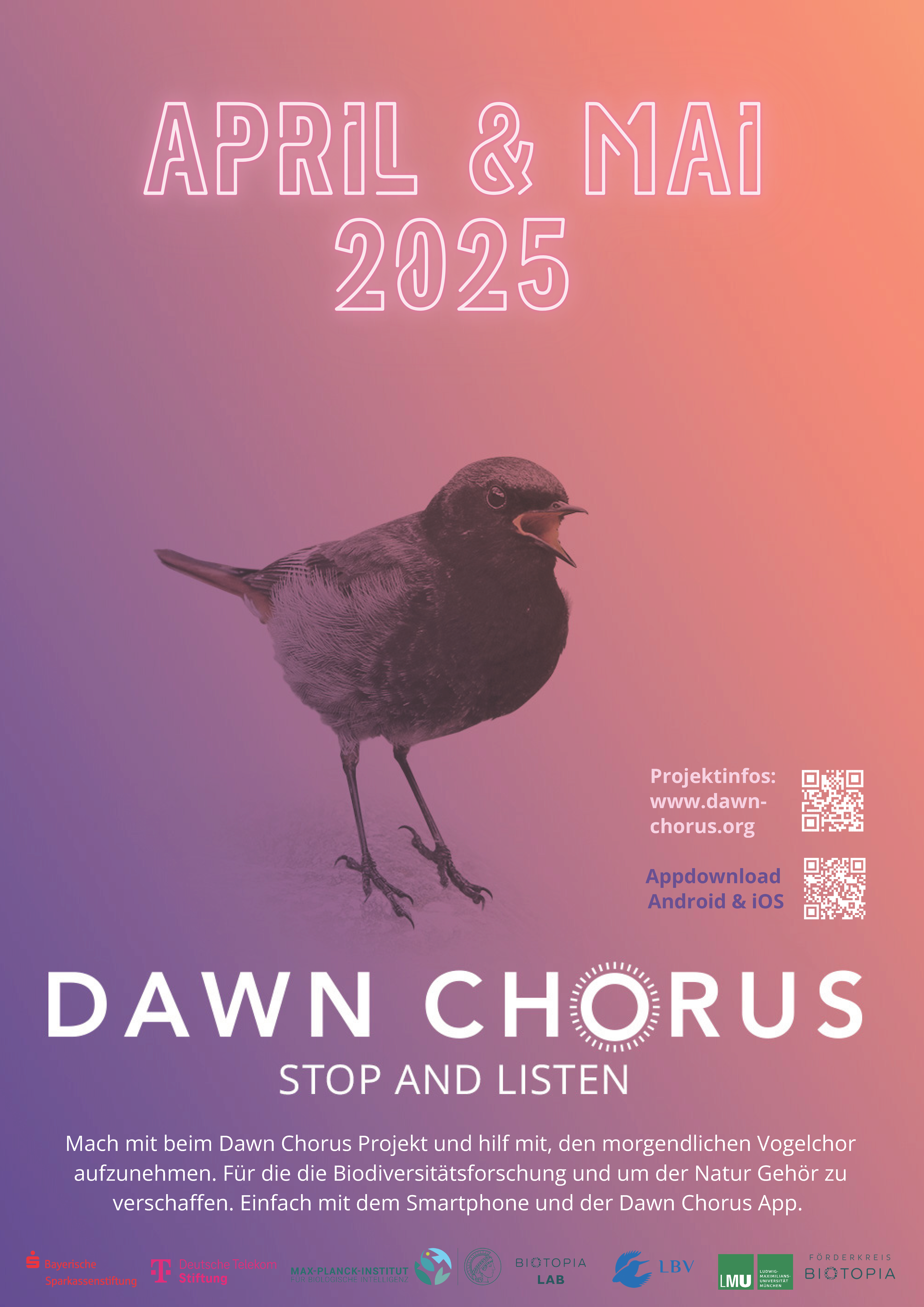 “Dawn Chorus is a project that invites people to stop and listen, and connect with their local biodiversity through the medium of sound, while contributing to a global citizen science and art project. Birdsong is a vital indicator of the health of our ecosystems, and we want this project to be an alarm call to wake people up to the need to protect shrinking habitats for wildlife, and to make our cities and surrounding areas more hospitable to bird life. BIOTOPIA, Bavaria´s new museum for environment and life sciences in development, is deeply committed to nurturing a deeper understanding of the ecosystems we depend on, and of inspiring people to action to protect our planet.”